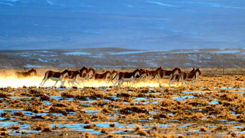 当冬雪轻拥盐池湾,天地间的生灵便汇聚成最美的画卷。清晨的阳光刺破冰层,鸟儿的轻啼与藏野驴的踏雪声交织,和着峡谷间的风,共同奏响冬日里的生命欢歌。